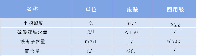 進(jìn)料液:鈦白粉副產(chǎn)廢硫酸,500噸/天,硫酸濃度≥24%,硫酸亞鐵含量<160g/L;
